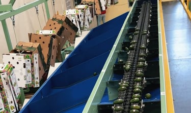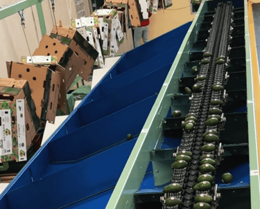 Etiquetamos y calibramos la fruta para su envío a las tolvas según peso y calidad.